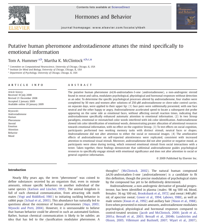 Същият принцип действа и в природата - феромоните са основният критерий при избора на партньор, като животните инстинктивно избират партньори чиито феромони изпращат най-силни сигнали.